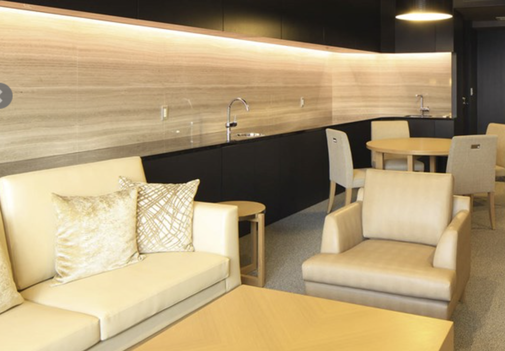 バレーパーキングサービスをご利用の際にくつろげる開放的な居心地の良い共用空間