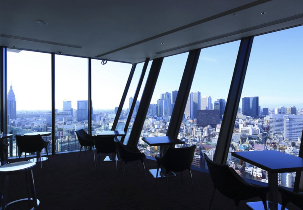 新宿苑の方向からメガロポリスが一望できるくつろぎの空間